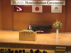 令和7年4月8日、北林議長が国際教養大学春季入学式に出席し、お祝いのことばを述べられました。