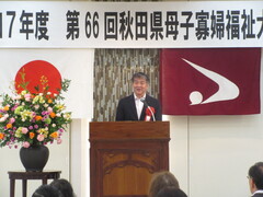 令和7年8月24日、工藤議長が第66回秋田県母子寡婦福祉大会に出席し、お祝いのことばを述べられました。