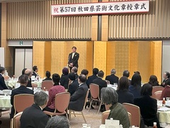 令和7年12月10日、工藤議長が第57回秋田県芸術文化章授章式並びに祝賀会に出席し、お祝いの言葉を述べられました。