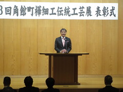 令和7年10月24日、工藤議長が第53回角館町樺細工伝統工芸展表彰式に出席し、お祝いの言葉を述べられました。