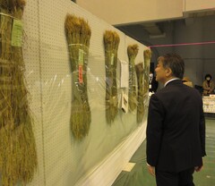 令和7年11月1日、工藤議長が令和7年度秋田県農業委員会大会に出席し、お祝いの言葉を述べられるとともに、秋田県種苗交換会の各種展示を見て回りました。
