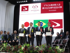 現地においてはブラジル秋田県人会創立65周年記念式典に出席したほか、日本人慰霊碑への参拝などを行い、移住者の長年の労をねぎらい交流を深めました。