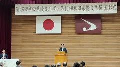 令和7年10月30日、島田副議長が令和7年秋田県文化功労者・地方自治功労者表彰式に出席し、お祝いの言葉を述べられました。